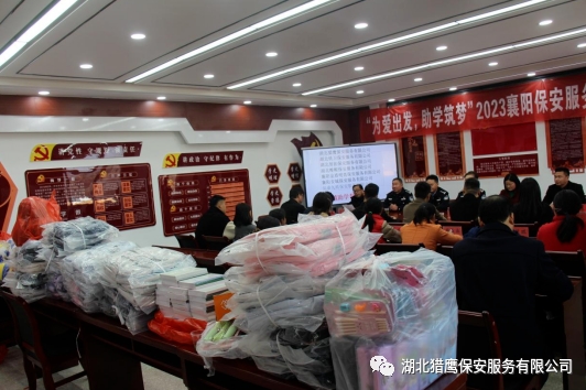 2023年11月24日在襄陽(yáng)市公安局保安監(jiān)管大隊(duì)的帶領(lǐng)下,湖北獵鷹保安服務(wù)有限公司聯(lián)合襄陽(yáng)其他保安服務(wù)行業(yè)一行7個(gè)單位走進(jìn)??悼h店埡鎮(zhèn)兩所學(xué)校,為貧困學(xué)生送去了資助金和一批書(shū)籍、文具、書(shū)包等物資。